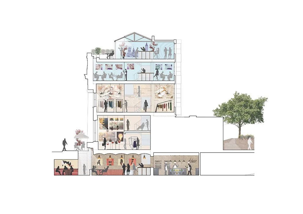 180,000 square foot refurbishment and restoration project in Knightsbridge, London. The grade II listed facade was retained and the interior remodeled to house retail and food & beverage offerings. An all weather roof terrace was created, with the installation of a glass and steel structure with motorised roof.
